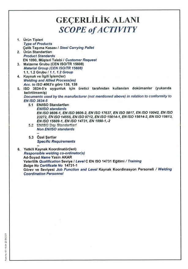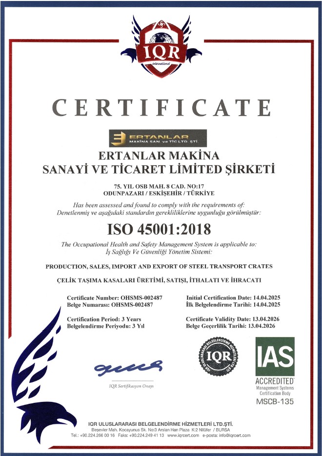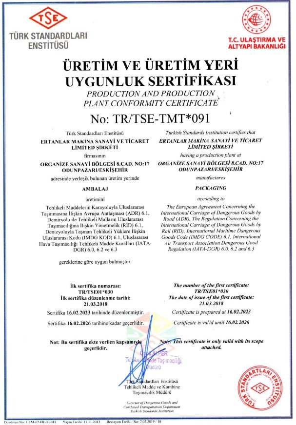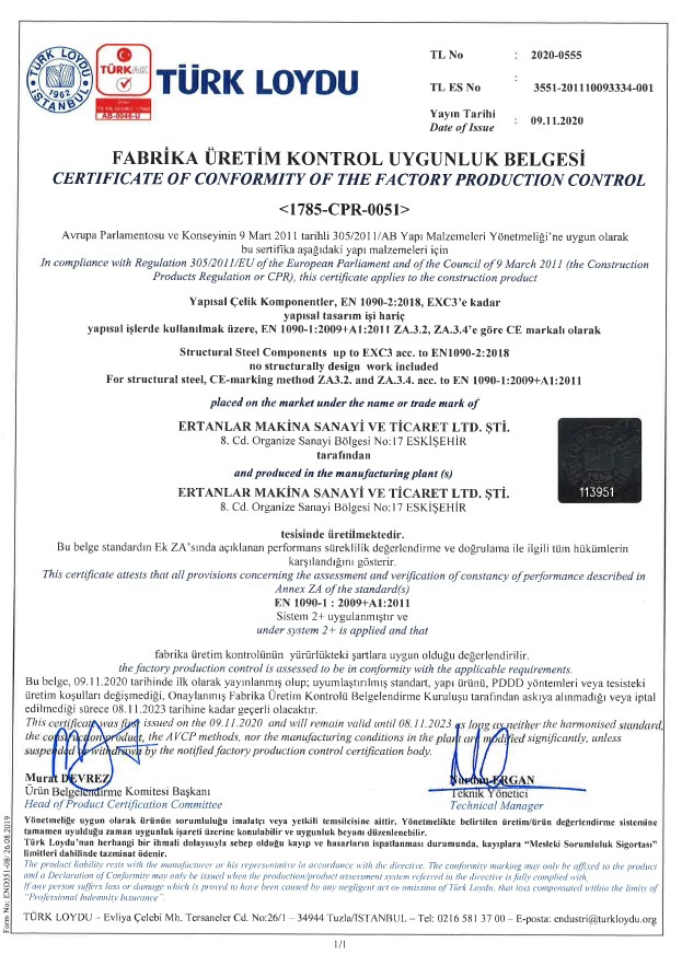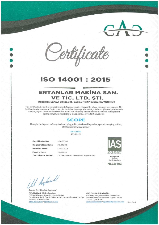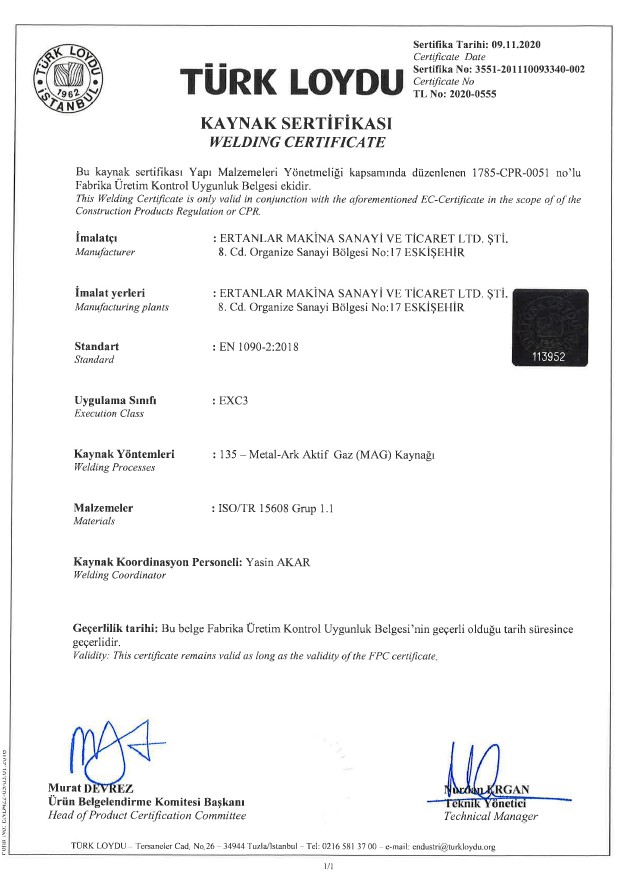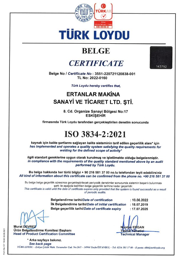 Sertifikalar | Ertanlar Makina